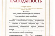 26 августа 2016 года на Августовской конференции педагогов коллектив школы награжден Благодарственным письмом Главы Админстрации Авиастроительного и Ново-Савиновского районов г. Казани за высокие показатели по итогам 2015-2016 учебного года! Поздравляем педагогический коллектив с наградой. Желаем всем педагогам здоровья, успехов, вдохновения во всех начинаниях!