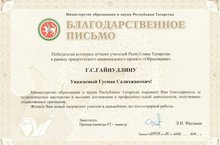 Поздравляем Гайнуллина Гусмана Салихжановича с победой в конкурсе лучших учителей РТ в рамках приоритетного национального проекта «Образование». Министерство образования и высокие достижения в профессиональной деятельности, получившие общественное признание.