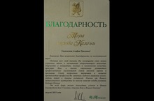 Благодарность от мэра города Казани И.Метшина. 04.04.2014