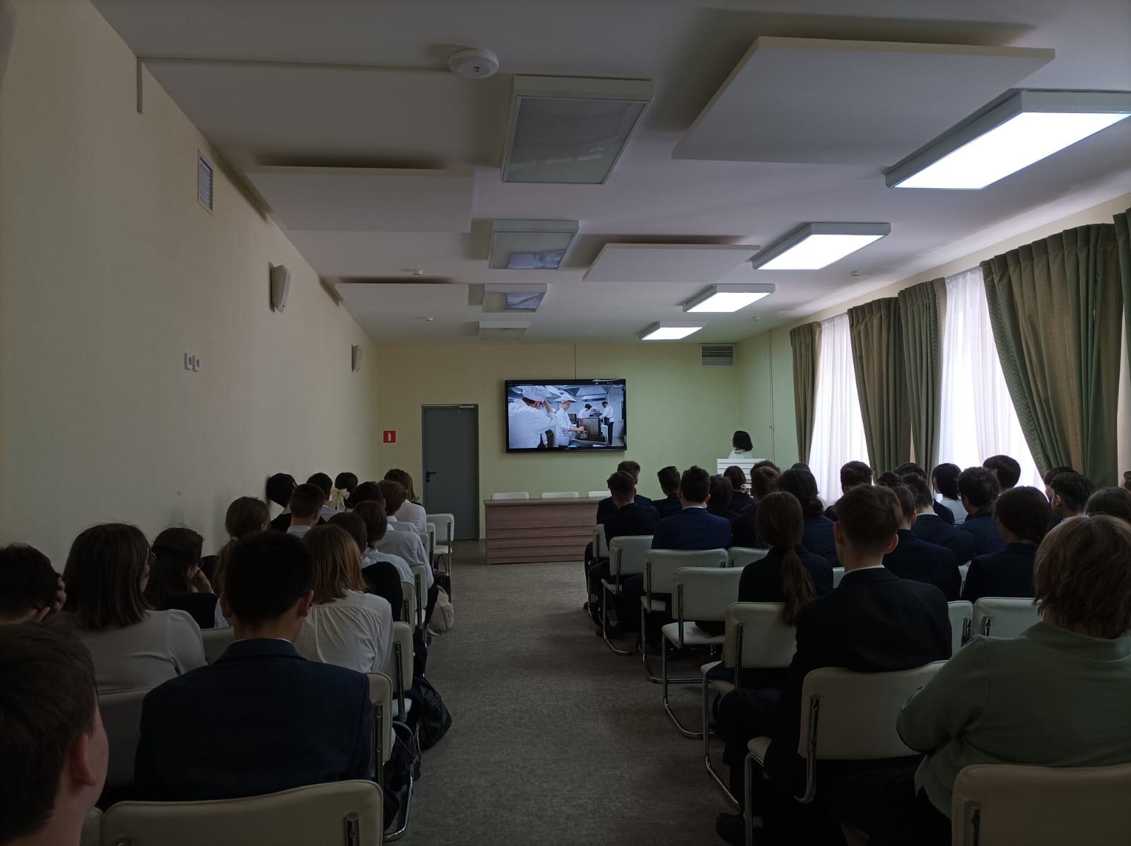 Профориентационные видеоролики и ознакомительный рассказ представителей колледжа, позволил узнать ребятам о специальностях обучения в колледже, правилах приёмной кампании 2024.