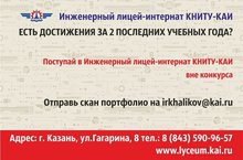 Зачисление в Инженерный лицей-интернат КНИТУ-КАИ вне конкурса 15.06.2019