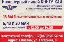 Инженерный лицей КНИТУ-КАИ для одаренных детей объявляет набор учащихся в 7-11 классы на 2017/2018 учебный год. 15 мая старт вступительных испытаний.