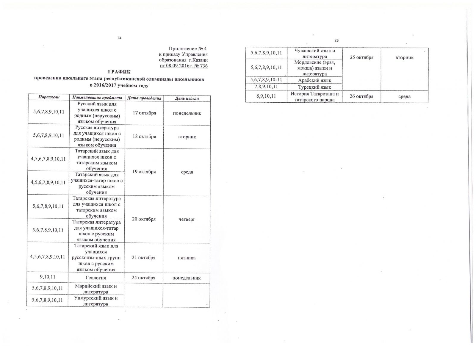 График проведения школьного этапа республиканской олимпиады школьников в 2016/2017 учебном году