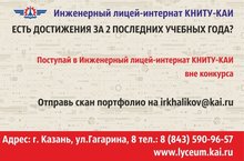 Специализированный учебный научный центр "Инженерный лицей-интернат КНИТУ-КАИ" - новости