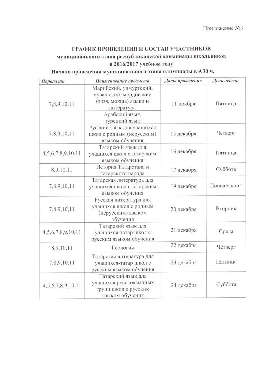 ГРАФИК проведения муниципального этапа республиканской олимпиады школьников в 2016/2017 учебном году