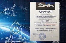 2 и 3 октября 2019 года в рамках Международной конференции "Околоземная астрономия и космическое наследие" в Казанском Федеральном университете состоялась Шестая молодежная школа "Космическая наука". Гольцварт Е. участвовала в творческом конкурсе и заняла I место. Поздравляем!!!