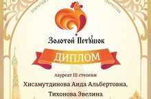 Поздравляем с успешным выступлением на Открытом Региональном конкурсе детского творчества "Золотой петушок" Лауреата III степени в номинации "Учитель-ученик" преподавателя Хисамутдинову Аиду Альбертовну и учащуюся Тихонову Эвелину, Дипломанта I степени Гараева Камиля (преподаватель Юнусова Наталья Александровна, концертмейстер Блинова Виолина Лорэнсовна). Желаем Вам дальнейших творческих побед!