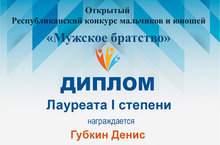 13 мая в нашей школе состоялся Открытый Республиканский конкурс мальчиков и юношей "Мужское братство". Участниками конкурса стали более 300 учащихся со всей Республики. Призовые места заняли более 200 участников, они были награждены дипломами и медалями.