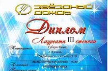 Поздравляем Лауреата 3 степени V Юбилейного международного фестиваля-конкурса детского и юношеского творчества "Звездный дождь" Губкина Дениса и его преподавателя Огневу Ольгу Владимировну!