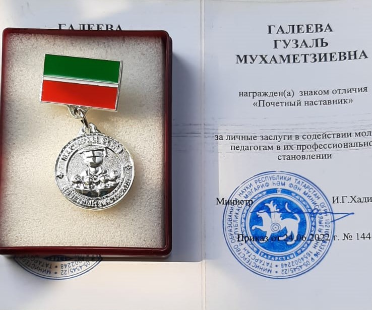 наком отличия «Почётный наставник» Министерства образования Республики Татарстан отмечена в этом году преподаватель нашей школы по классу фортепиано Гузаль Мухаметзиевна Галеева!