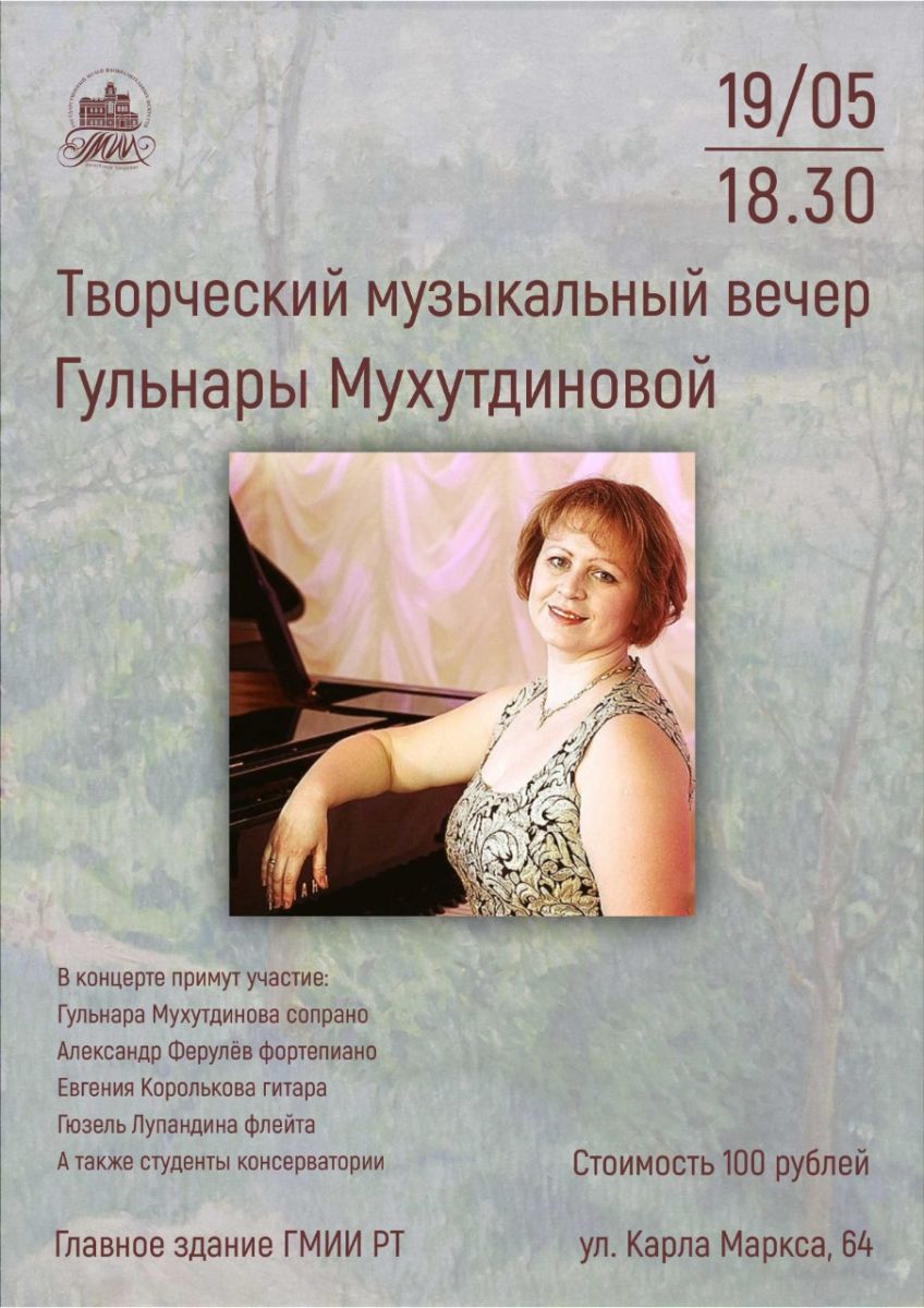 Творческий вечер Гульнары Мухутдиновой состоялся 19 мая в Государственном музее изобразительного искусства Республики Татарстан.