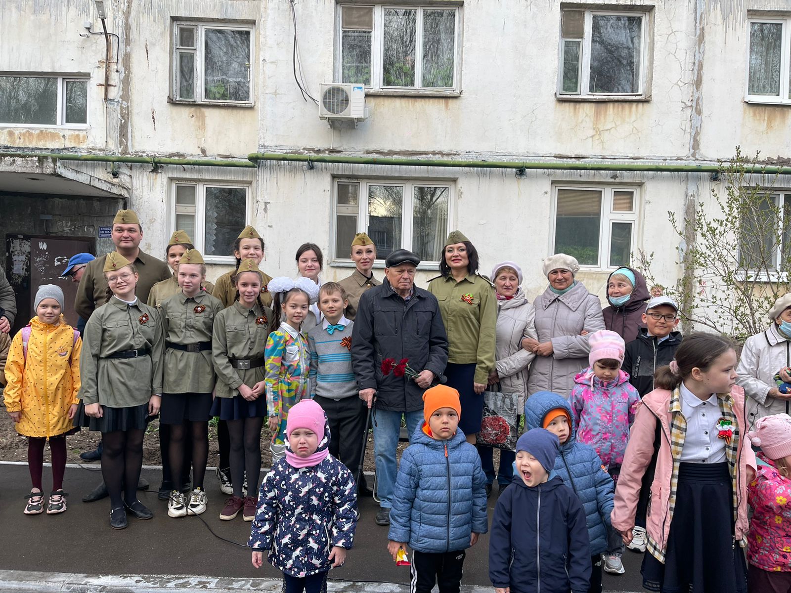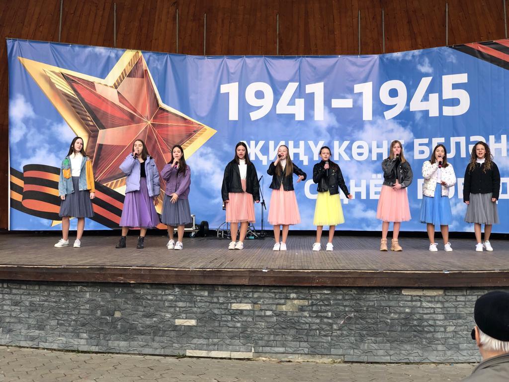 Салахова Ассэль, ученица по классу вокала А.З. Амировой, в составе агитбригады поздравляла ветеранов ВОВ песней «Ордена».