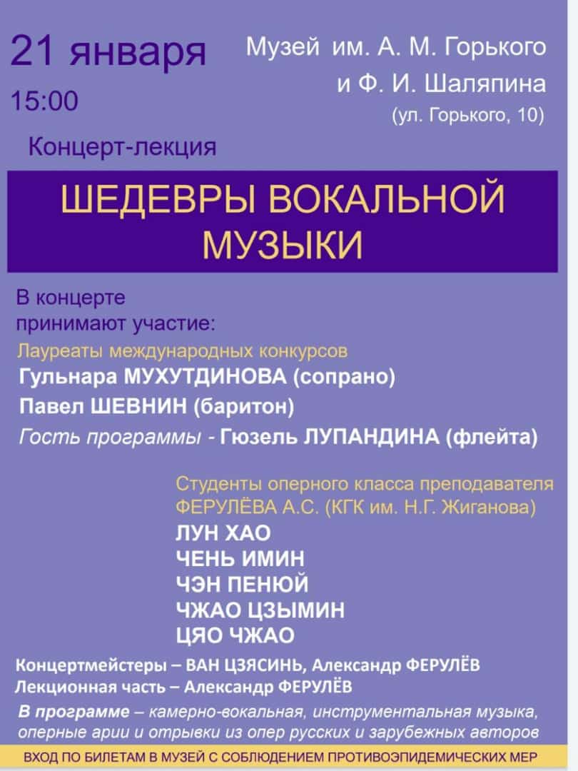 Вчера в музее А. Горького и Ф.Шаляпина состоялся концерт-лекция "Шедевры вокального искусства", в котором приняли участие преподаватели нашей школы.