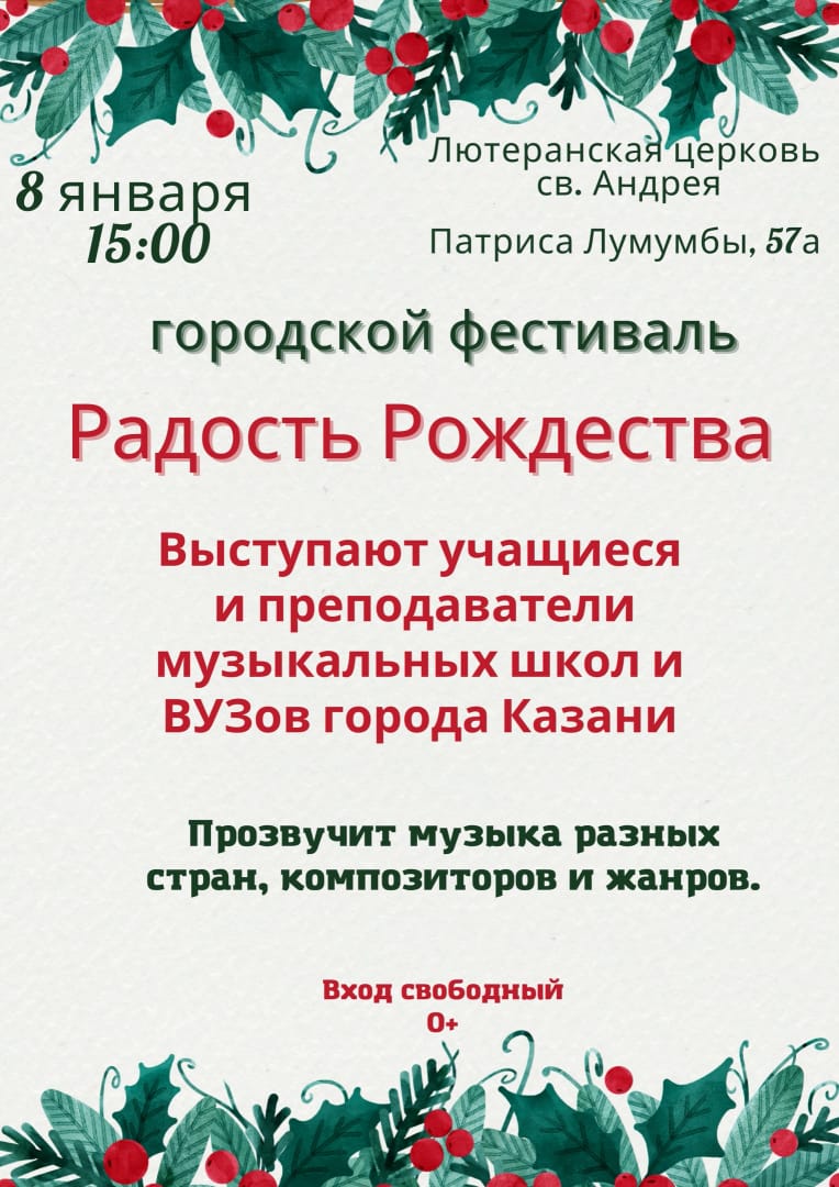 8 января в Лютеранской церкви св. апостола Андрея состоялся городской фестиваль «Радость Рождества», организованный правлением церкви совместно с преподавателем ДМШ №11 Гузель Борисовной Лупандиной.