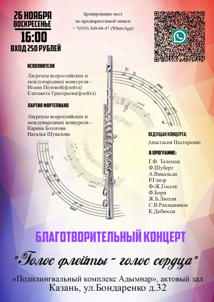 В последнее воскресенье ноября в здании ГАОУ "Адымнар" (по адресу Бондаренко, 32) состоится концерт инструментальной музыки, сбор средств от которого пойдёт в пользу участников СВО.