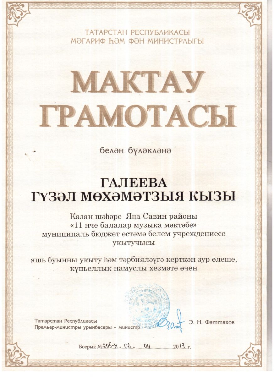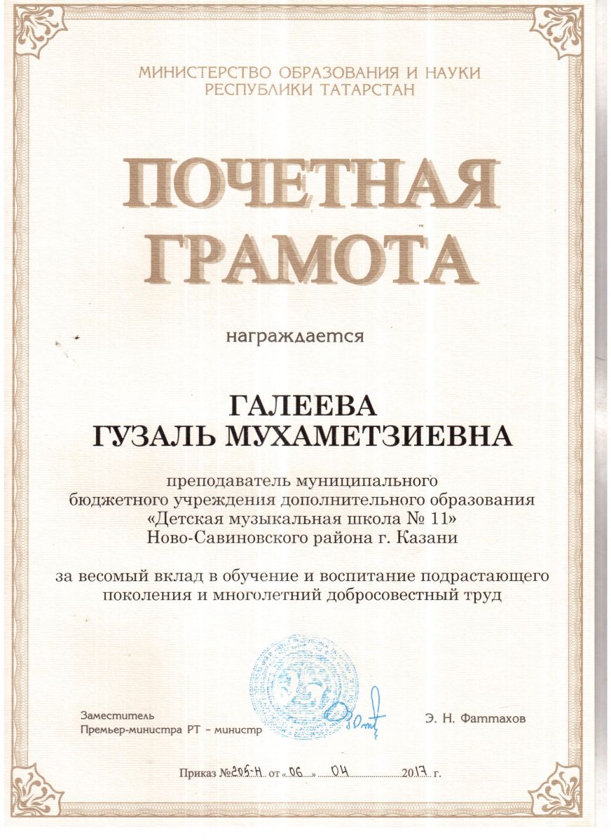 Поздравляем преподавателя фортепиано Галееву Гузаль Мухаметзиевну с «ПОЧЕТНОЙ ГРАМОТОЙ» Министерства образования и науки РТ «За вклад в обучение и воспитание подрастающего поколения и многолетний добросовестный труд». Желаем дальнейших творческих достижений!
