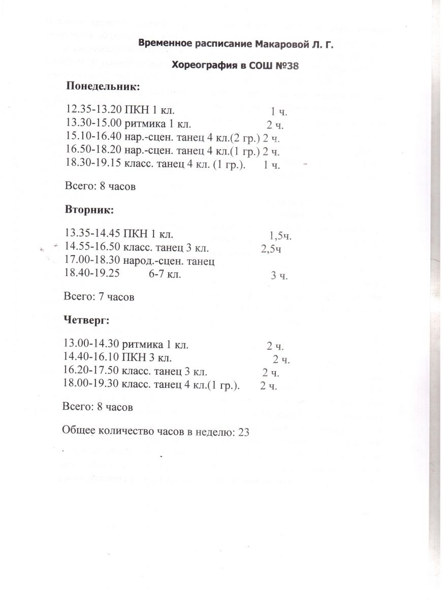 Внимание! Временное расписание занятий хореографии на базе СОШ №38 31.08.2017
