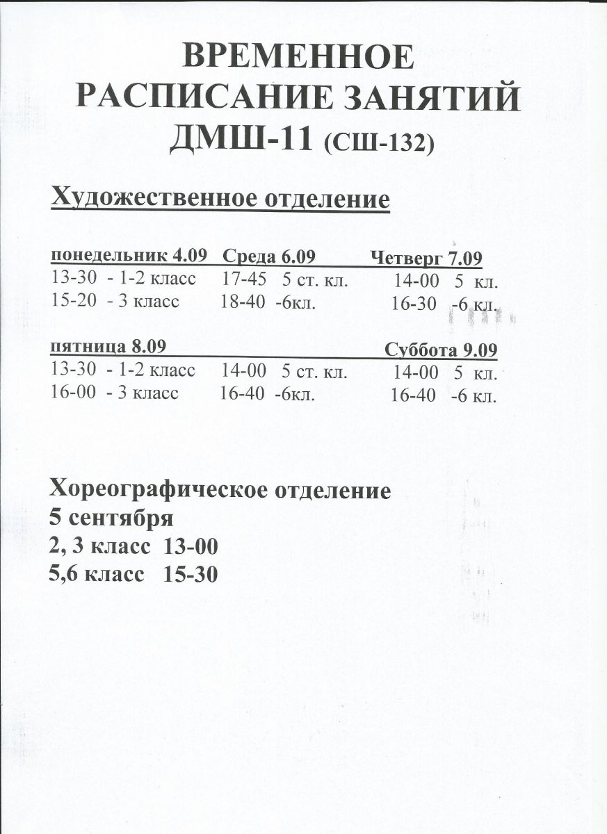 Временное расписание занятий на базе СОШ 132 (ИЗО, хореографическое отделение)