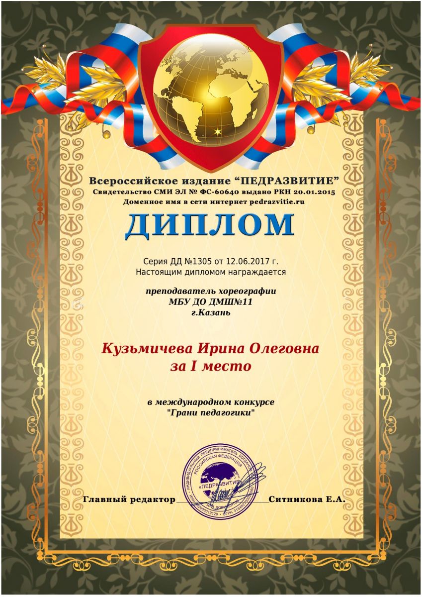 2 Кузьмичева И.О. - Грани педагогики -1 место