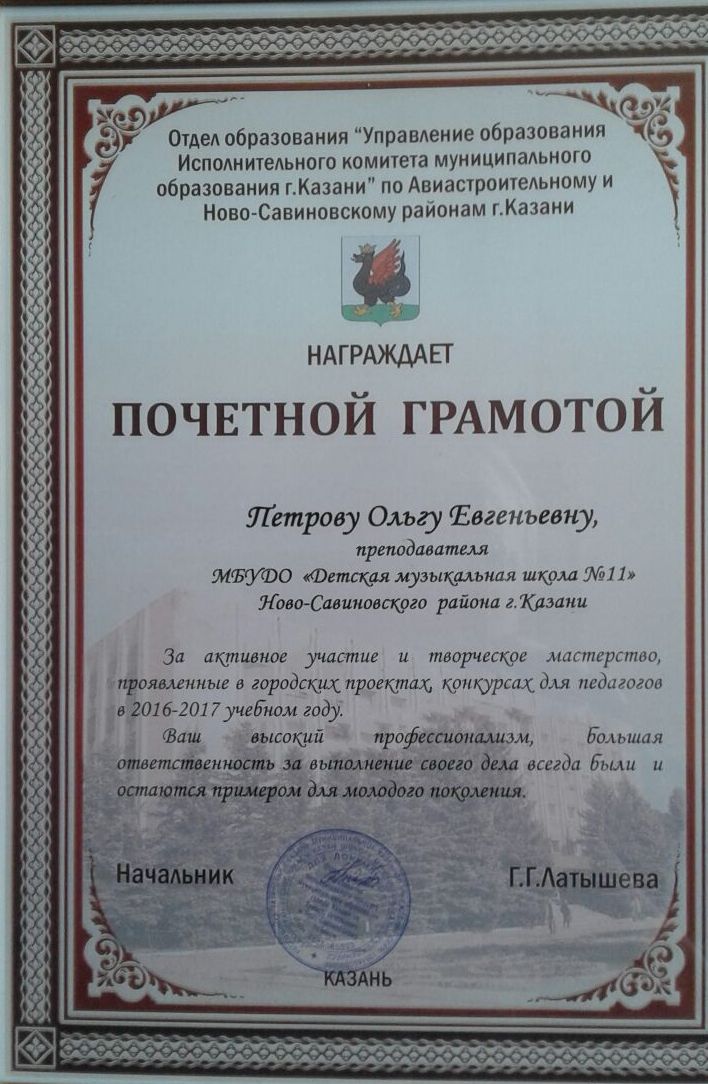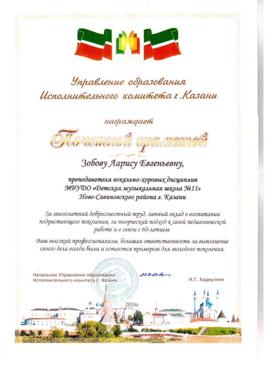 2 Зобова Л.Е. Почетная грамота "УО ИКМО" г.Казани