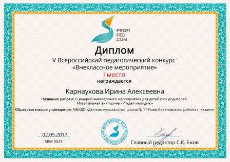 17 Карнаухова И.А. Лауреат 1 степени "ПрофиПедагог. Внеклассная работа"