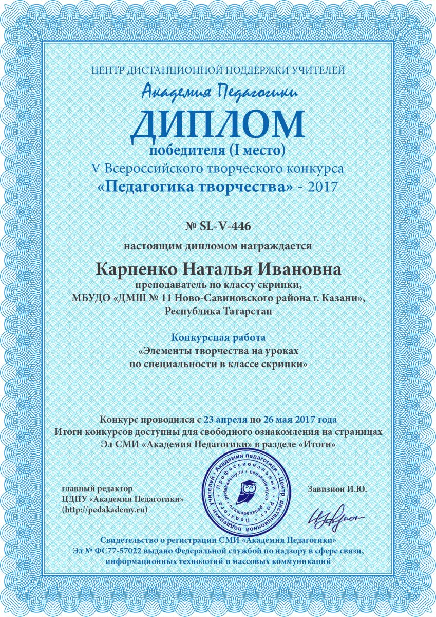 13 Карпенко Н.И. - Педагогика творчества - 1 место