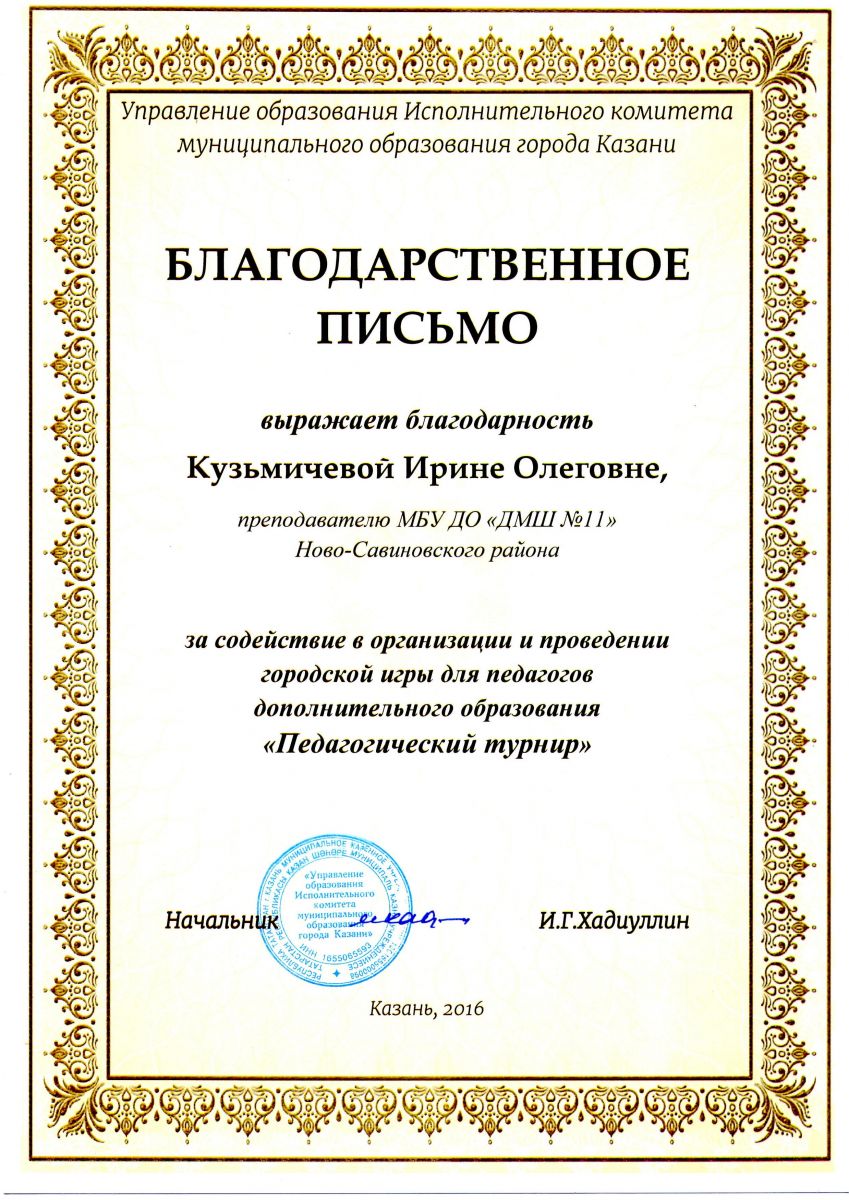 5 Кузмичева ИО. Благодарственное письмо "Педагогический турнир"
