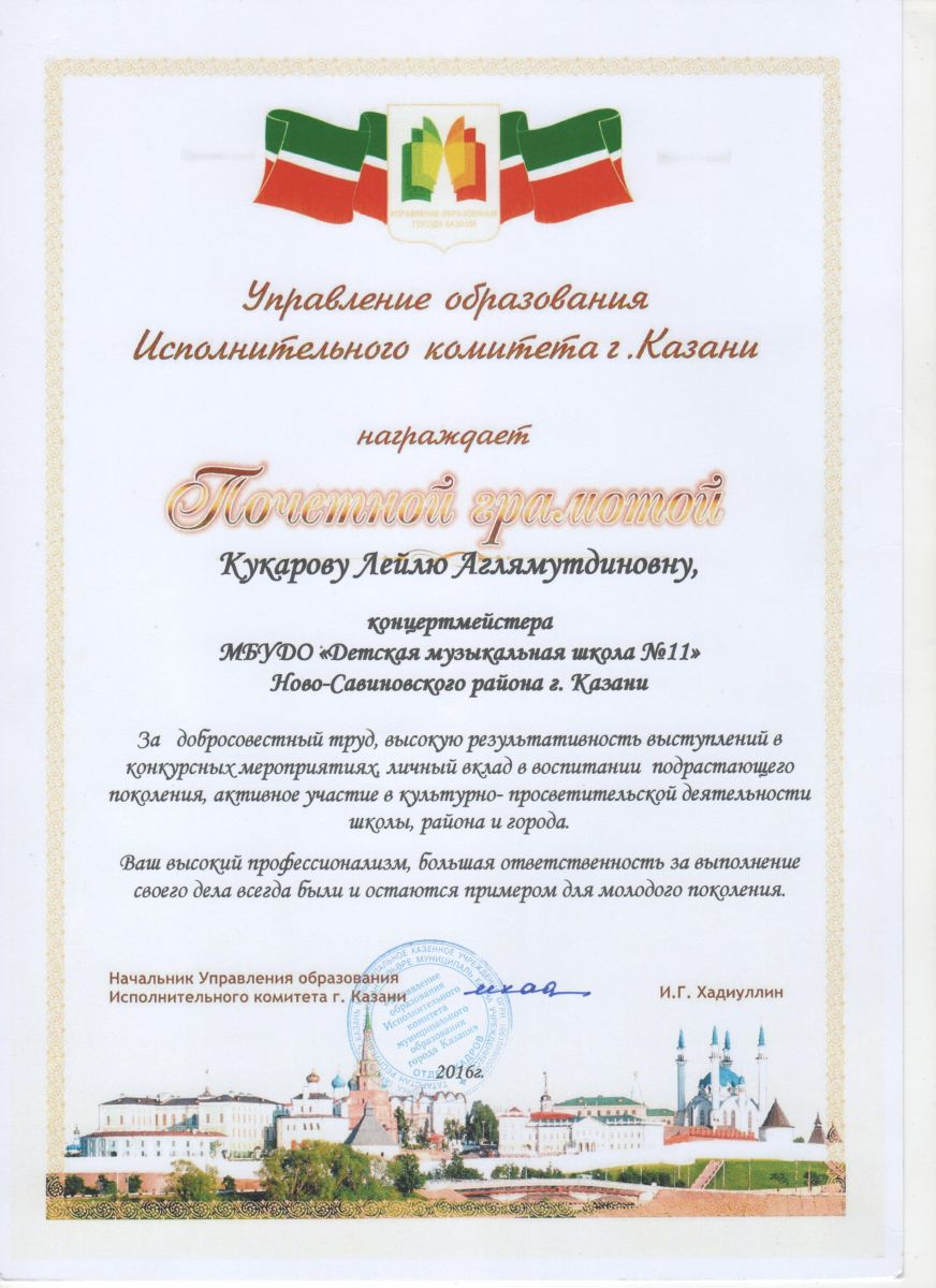 3 Кукарова Л.А. Почетная грамота "УО ИКМО" г.Казани