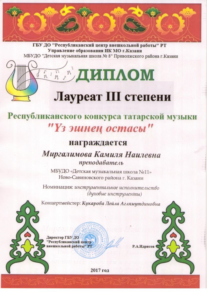 3. Низамутдинова Д.Ф.- Yз эшнен остасы- Лауреат 2 степени