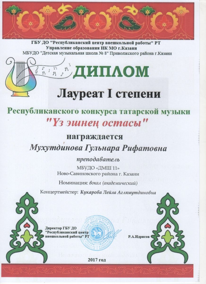 1. Мухутдинова Г.Р. -Yз эшнен остасы-Лауреат 1 степени