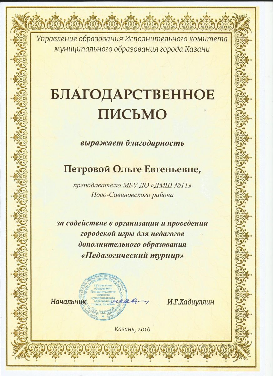 6 Петрова О.Е. Благодарственное письмо "Педагогический турнир"