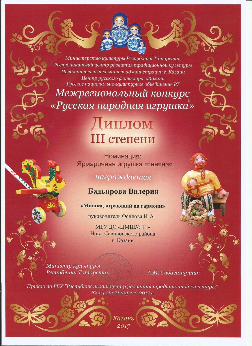 30 Бадьярова Валерия III место "Русская народная игрушка"