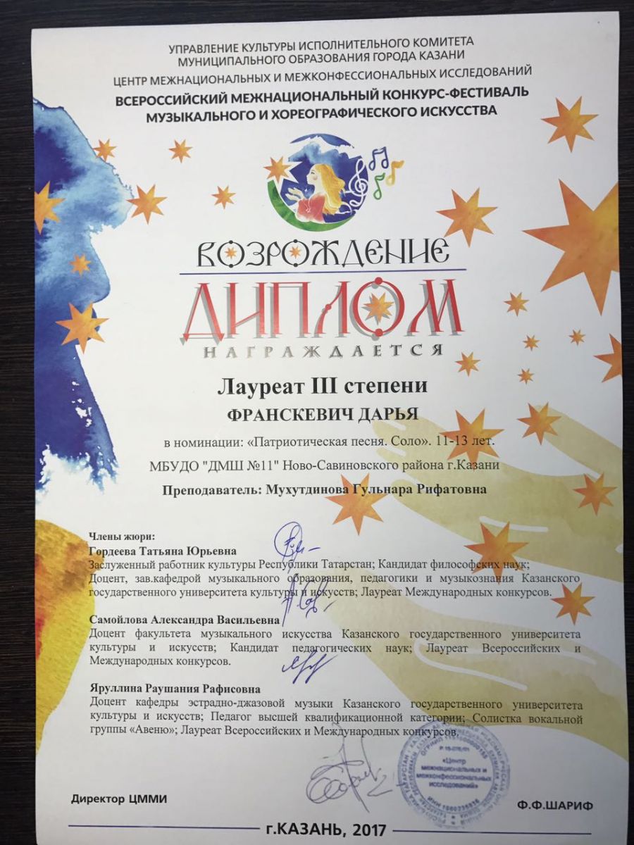31 Франскевич Дарья Лауреат III степени "Возрождение"