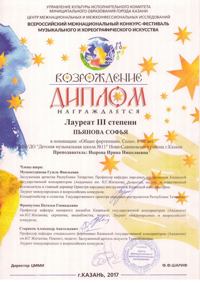13 Пьянова Софья Лауреат III степени "Возрождение"
