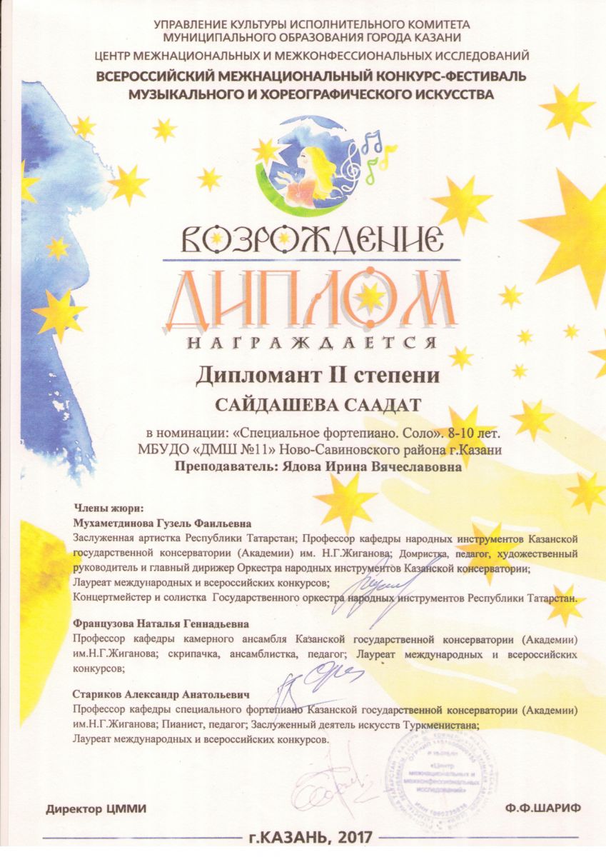 32 Сайдашева Саадат Дипломант II степени "Возрождение"