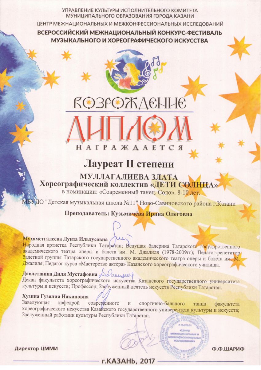 16 Муллагалиева Злата Лауреат II степени "Возрождение"