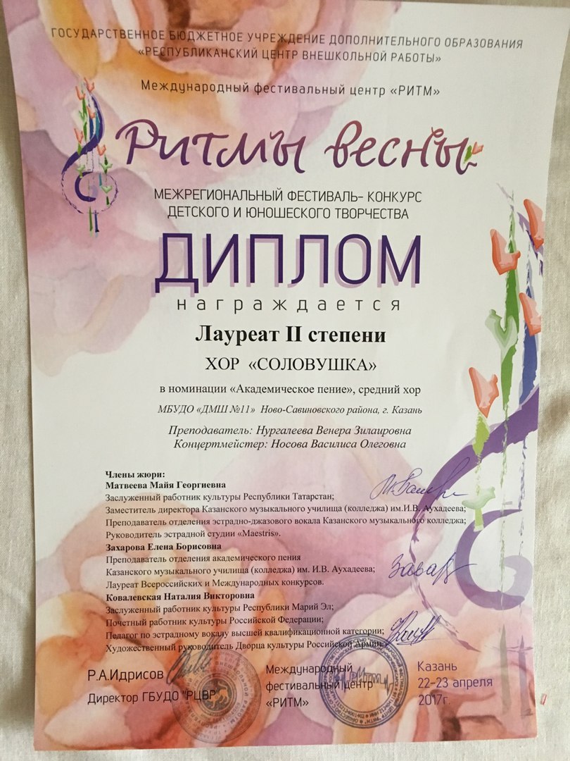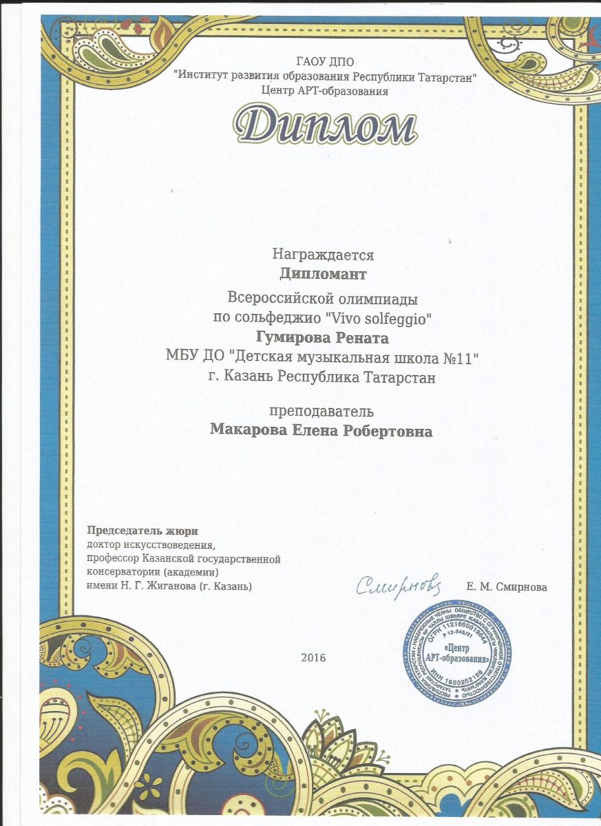 29 Гумирова Рената Дипломант "Vivo solfeggeo"