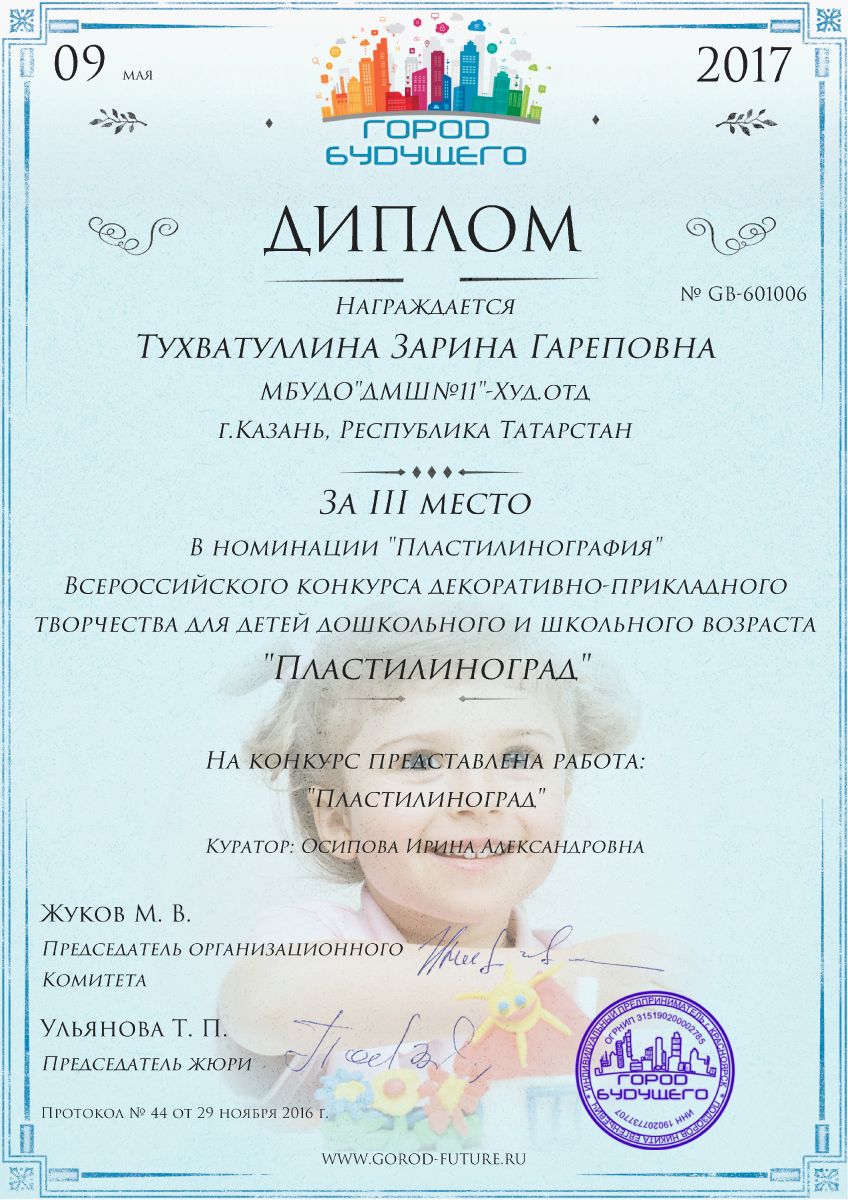 18. Тухватуллина Зарина III место "Пластилиноград"