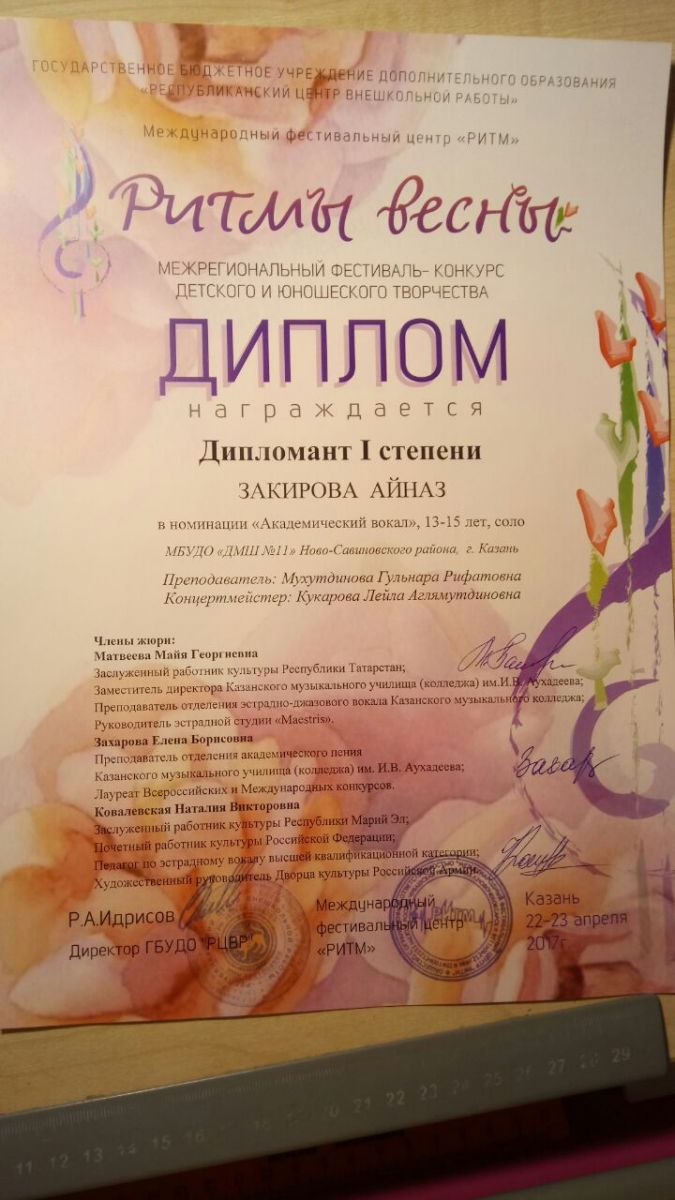 10 Закирова Айназ Дипломант I степени "Ритмы весны"