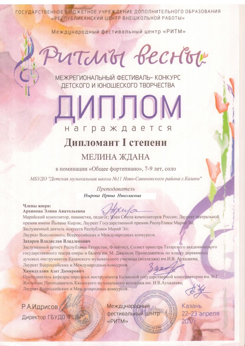 12 Мелина Ждана Диплом I степени "Ритмы весны"