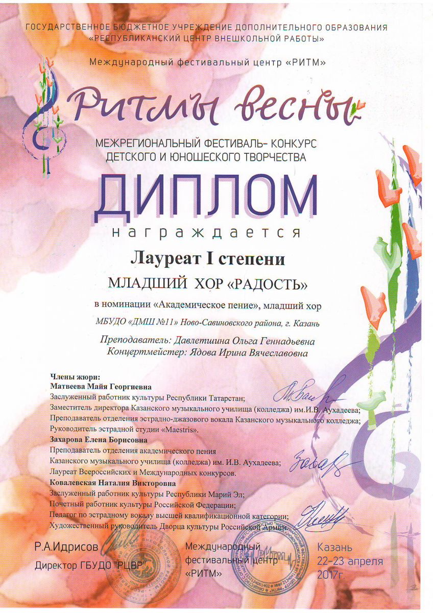 3 Хор "Радость" Лауреат I степени"Ритмы весны"