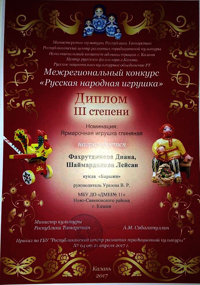 39 Шаймарданова Лейсан III место "Русская народная игрушка"