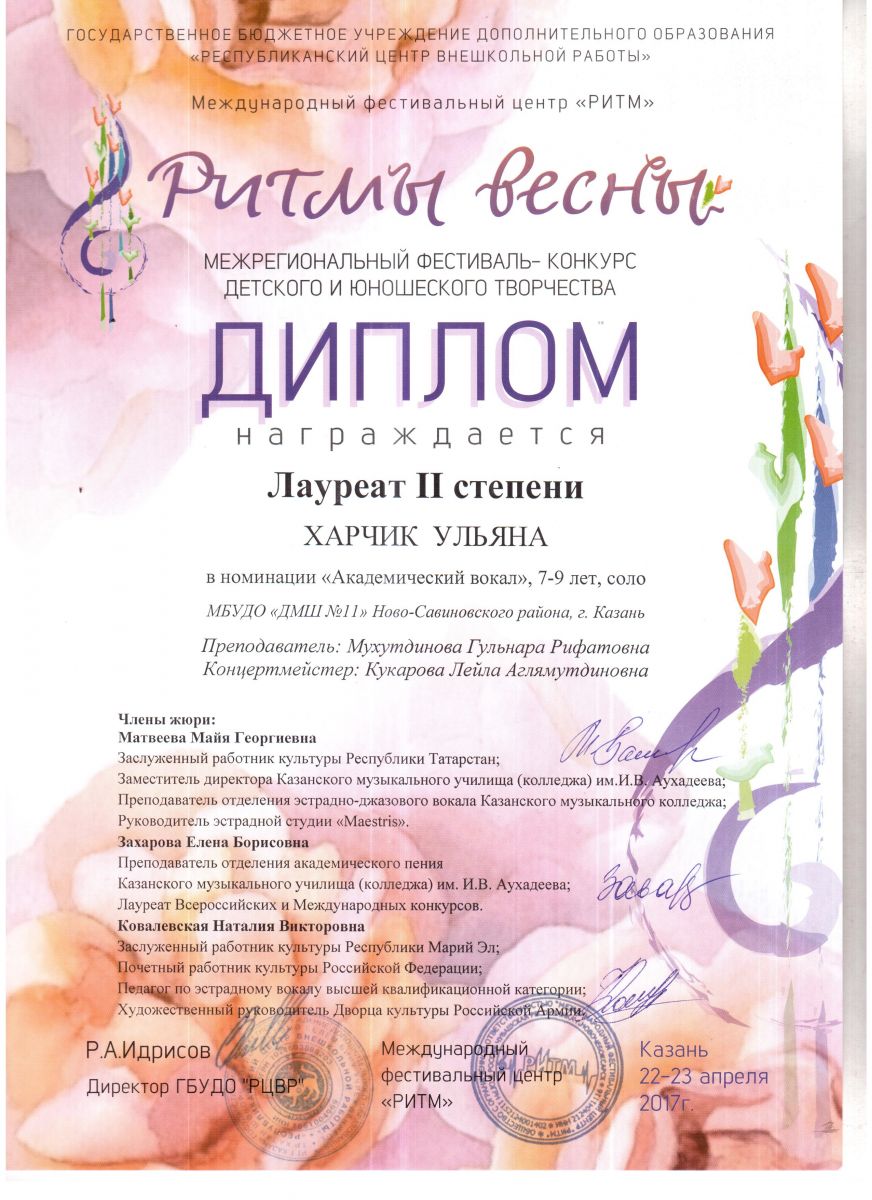 5 Харчик Ульяна Лауреат II степени "Ритмы весны"