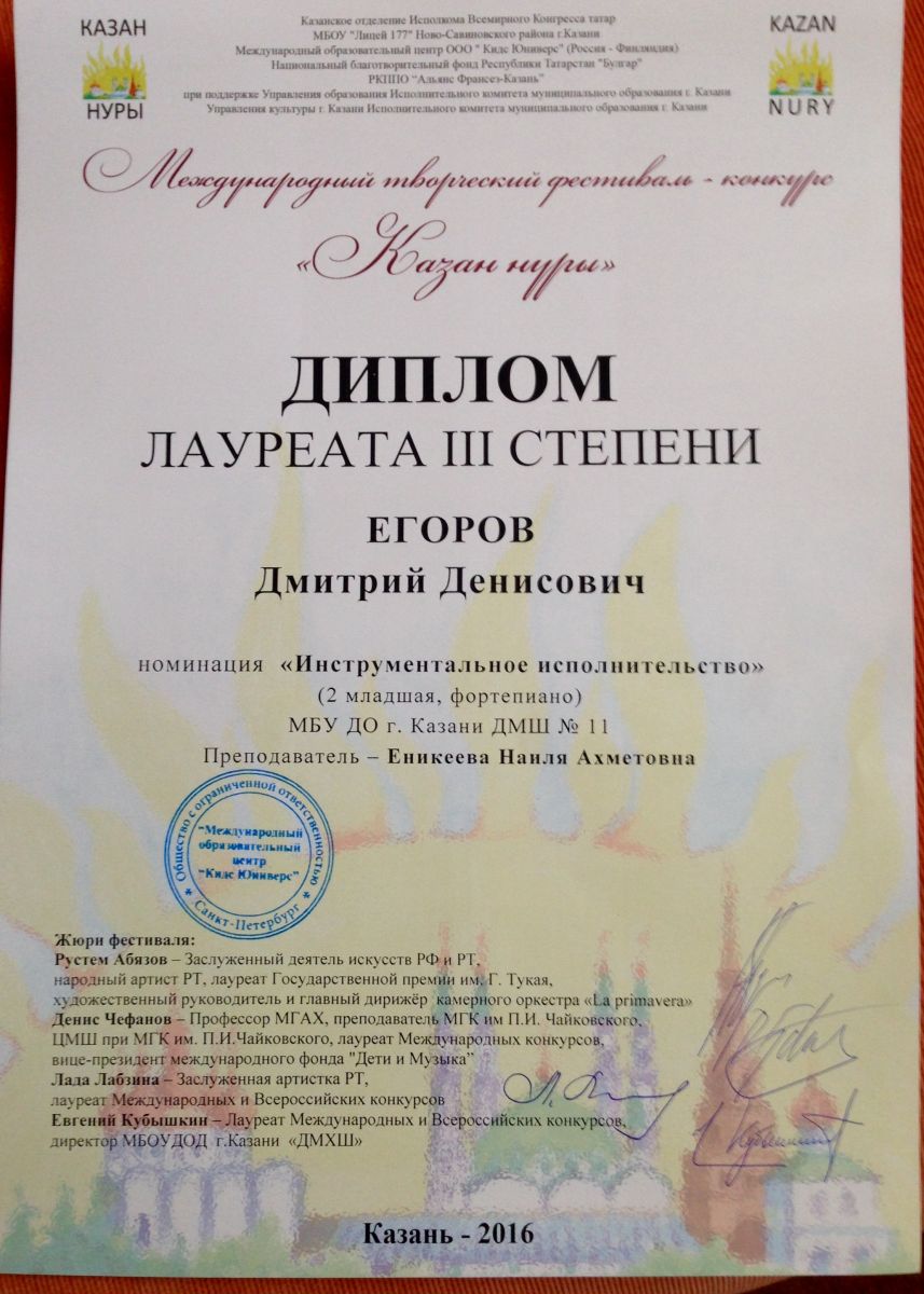 43 Дмитрий Егоров лауреат 3 степени Казан Нуры