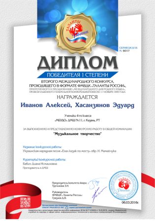 15 Иванов Алексей, Хасанзянов Эдуард Победитель I степени Таланты России