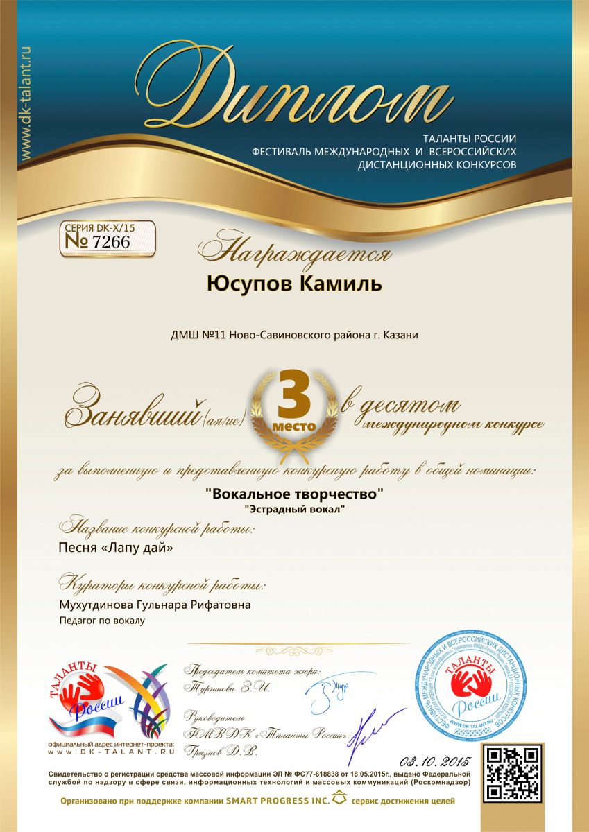 2 Юсупов Камиль, дипломант 1 степени , Содружество талантов