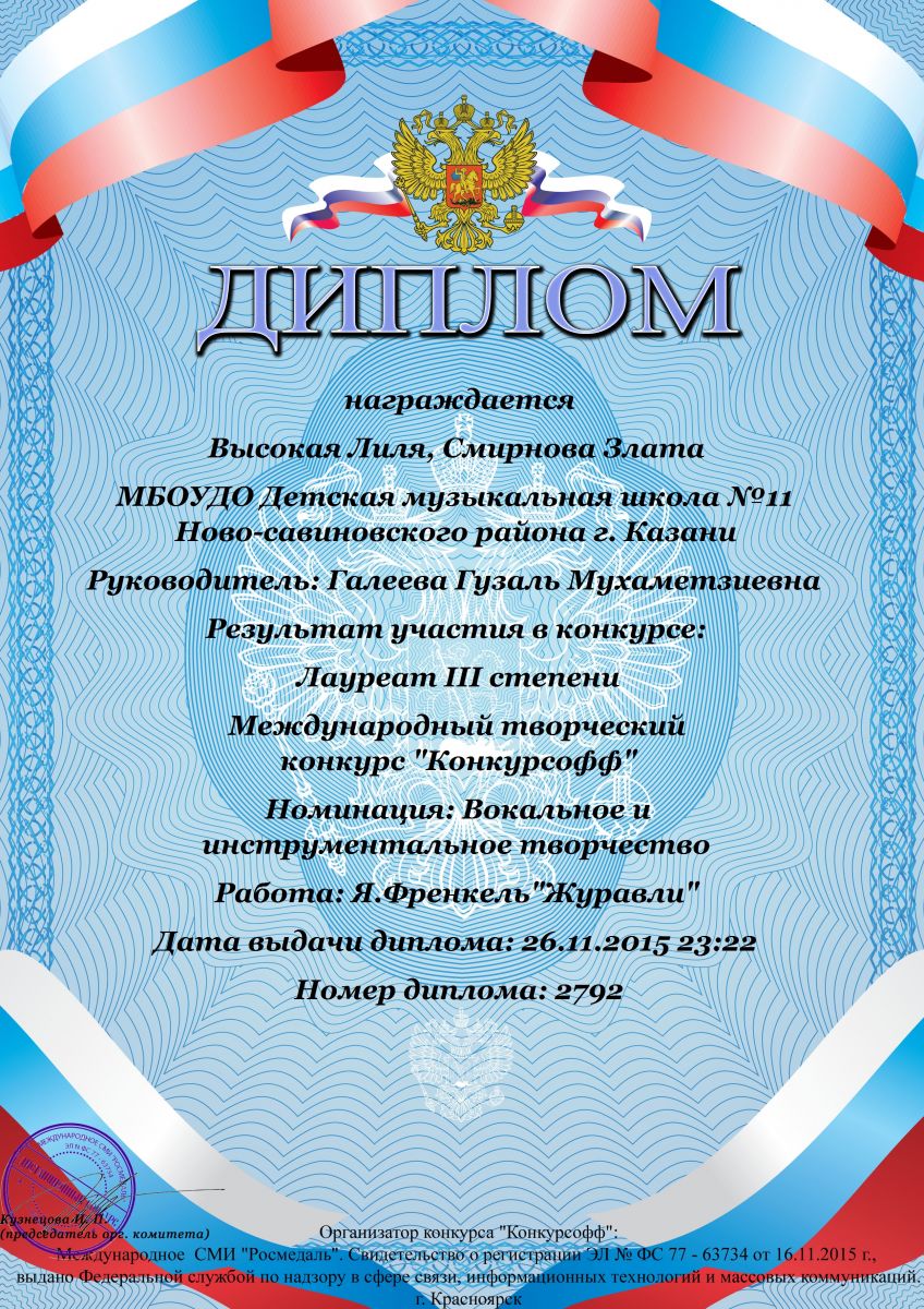 14 дуэт Высокая Л. Смирнова З. лауреат 3 степени Конкурсофф