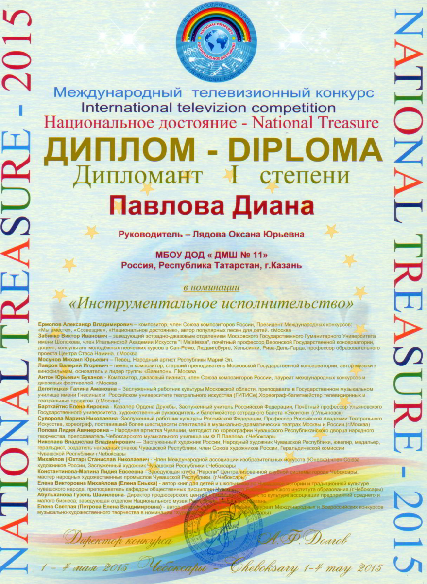 48 Павлова Диана, дипломант 1 степени, Национальное достояние
