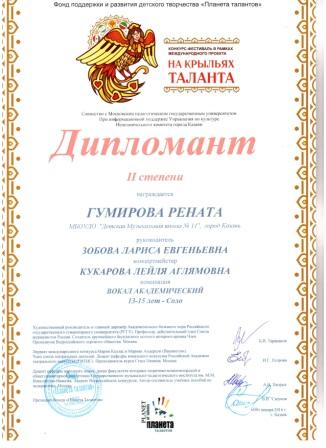 24 Гумирова Рената дипломант 2 степени На крыльях таланта