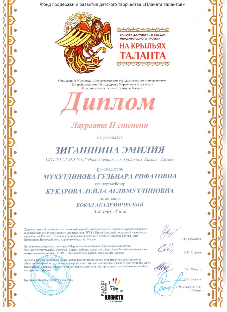 22 Зиганшина Эмилия лауреат 2 степени На крыльях таланта